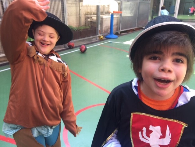 Hem fet les rutins diàries, hem treballat una mica vocabulari a l'àrea de llengua, i abans del pati ens hem disfressat...